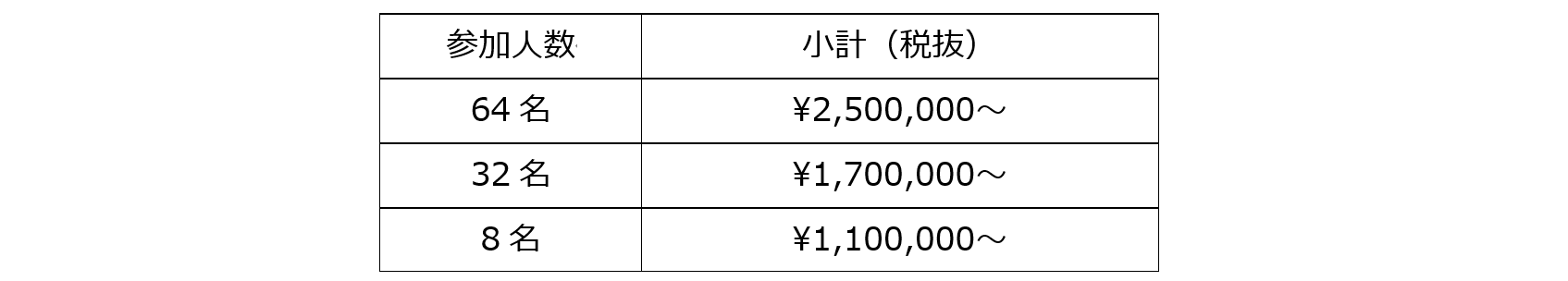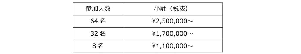 最少8名から最大64名まで参加可能で、企業ごとの課題に応じたカスタマイズにも対応する。宿泊利用も可能(別料金)。プログラム実施費用は内容により変動する。