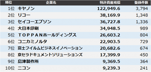 1位はキヤノン、2位リコー、3位セイコーエプソンとなった。