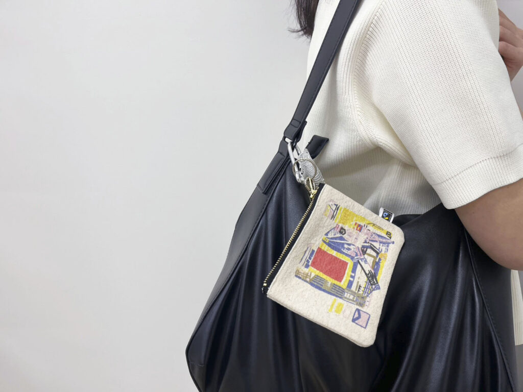 ポーチは、障がいのある人が携帯することの多い障がい者手帳の収納を想定して企画された。定期券や小物入れとしても使用できるサイズとし、鞄の中で探しやすいようカラビナを付けるなど、実用性にも配慮している。