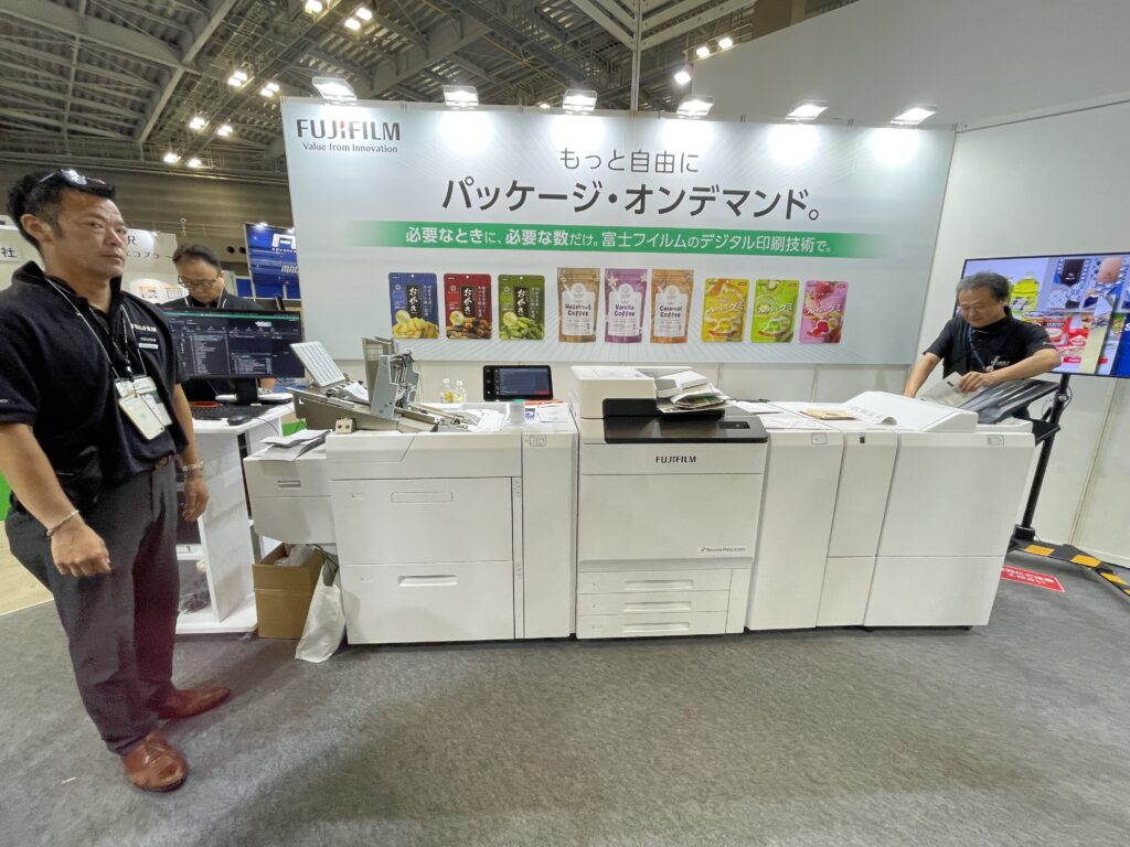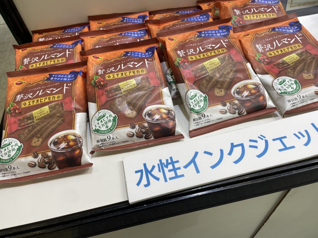 シンクラボラトリーは、自社の軟包装用デジタル印刷機「FXIJ」で印刷したサンプルを多数出品。中でも大手菓子メーカーのブルボンで実際に使用した「贅沢ルマンド」のパッケージなどが注目された。