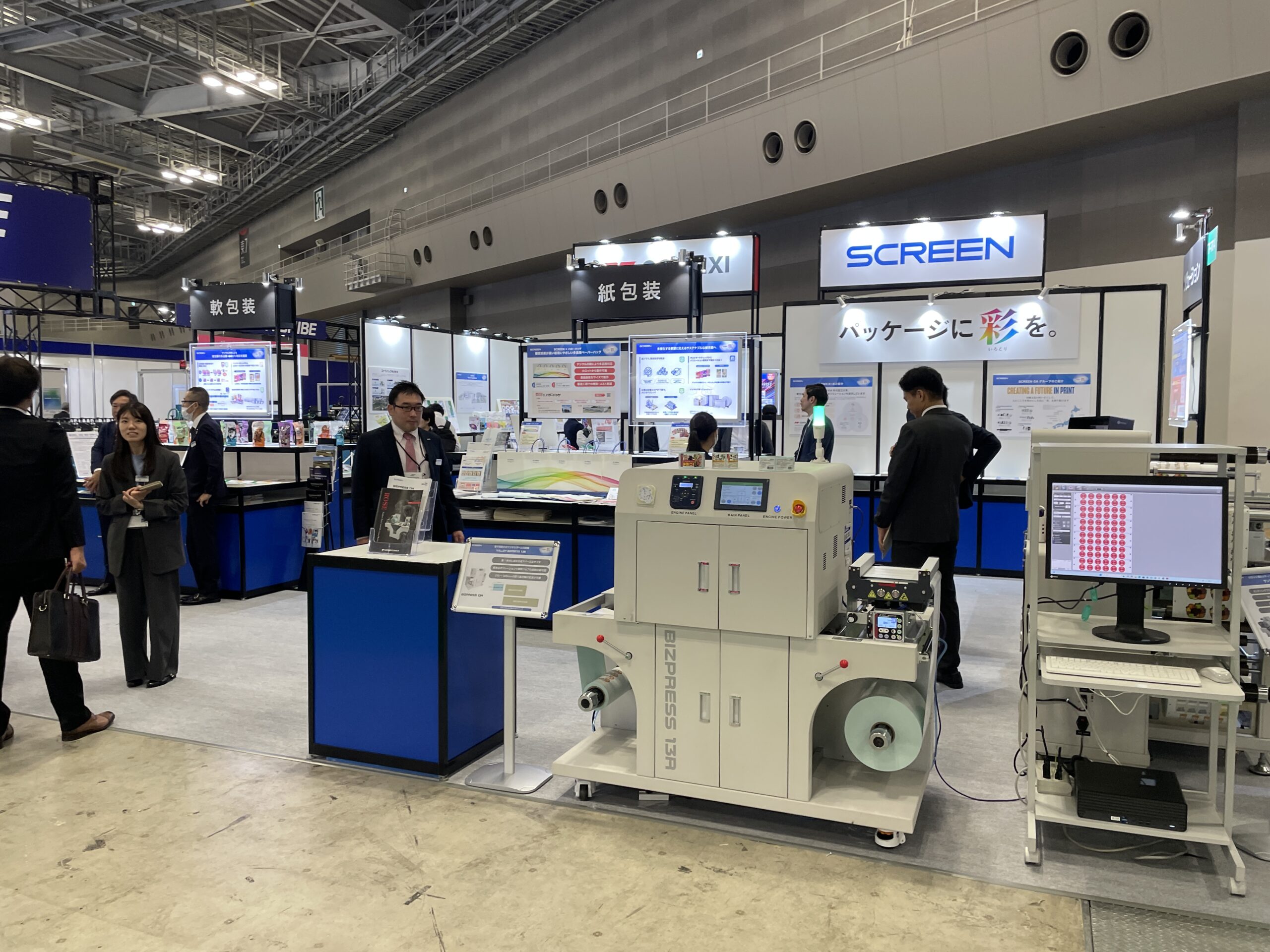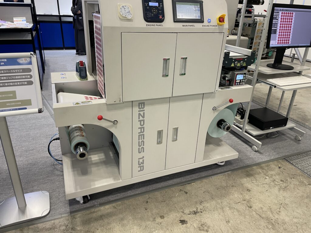 SCREENグラフィックソリューションズとSCREEN GPジャパンは、電子写真方式ラベル印刷機「BIZ Press13R」を展示。最大印刷幅は320mmで、最大印刷速度が7.2m/分、設置面積が約1.5㎡(畳1帖程度)と省スペース。補助金活用により約1,000万円で導入可能という。補助金申請により1000万円程度で購入できるという。