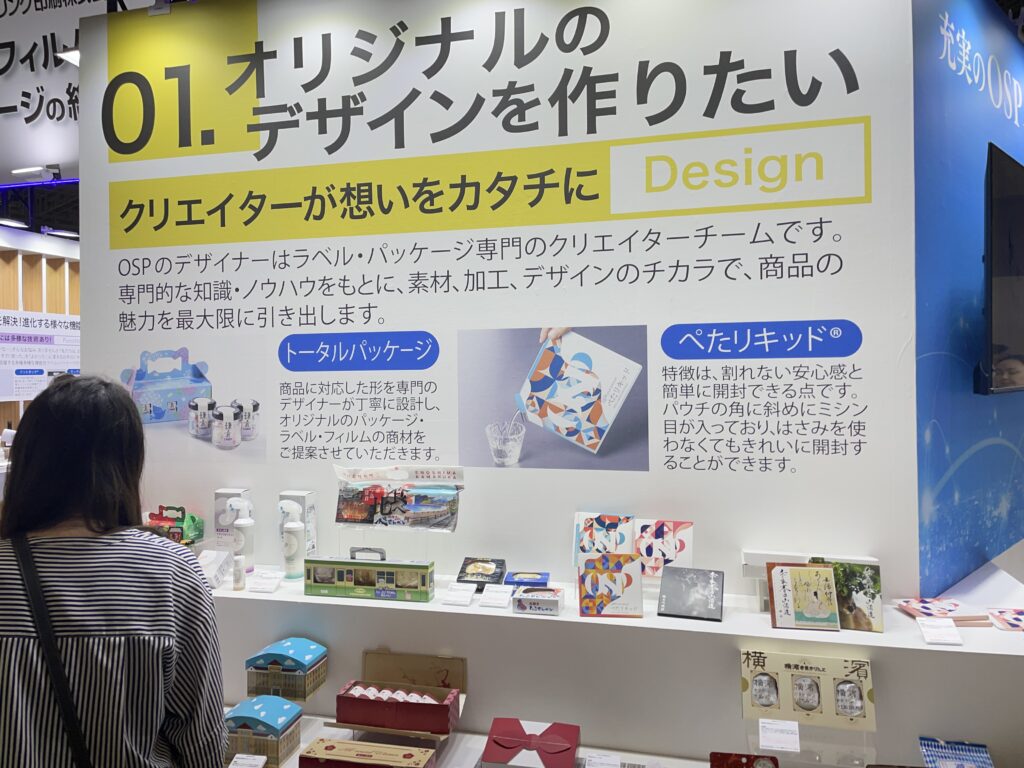 大阪シーリング印刷(OSP)は、自社製品をゾーニングして展示。社員のアイデアや顧客要望を取り入れた印刷製品で注目を集めた。