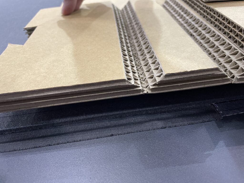 カッティングプロッタでは「CFX」シリーズで、強化ダンボールを加工している。