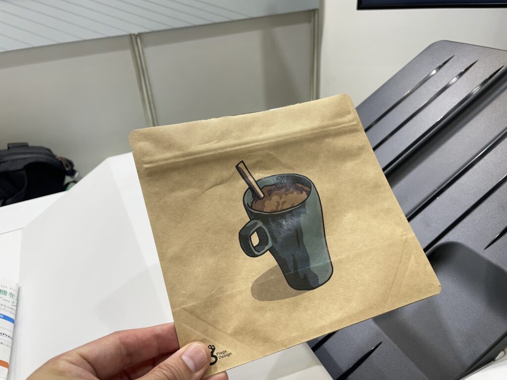グラビア印刷では数十万袋単位の発注が必要だったパウチを少量・多品種・短納期でプリントできるという。