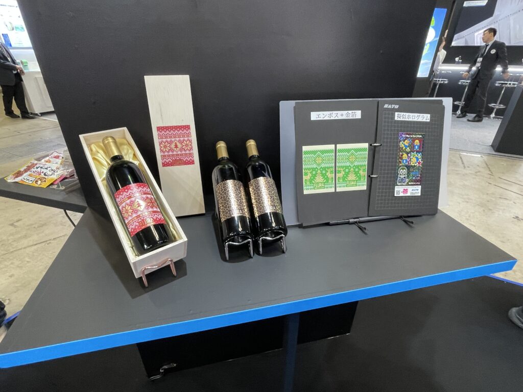 このほか、粘着剤のムラが見えない「高透明ラベル」や、冷蔵や結露の影響がない「チルド用ラベル」、摩擦に強い「ちぎり和紙ラベル」、特殊な加飾の「デジタルバーニッシュ」「ハジキニス加工」、粘着剤が点状で貼り剥がししやすく軽量な「ドットタック」など多数展示している。