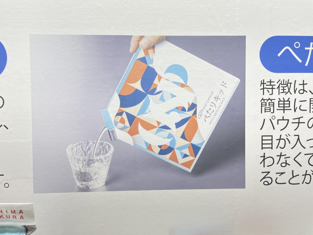 ぺたリキッド」は液体100mlを入れられる薄型パウチで、箱に入れて包装することで日本酒を軽量な土産用パッケージとして展開できるという。奈良の酒造メーカーの依頼で作った製品は人気で、今後エア員や調味料などでも採用を見込む。