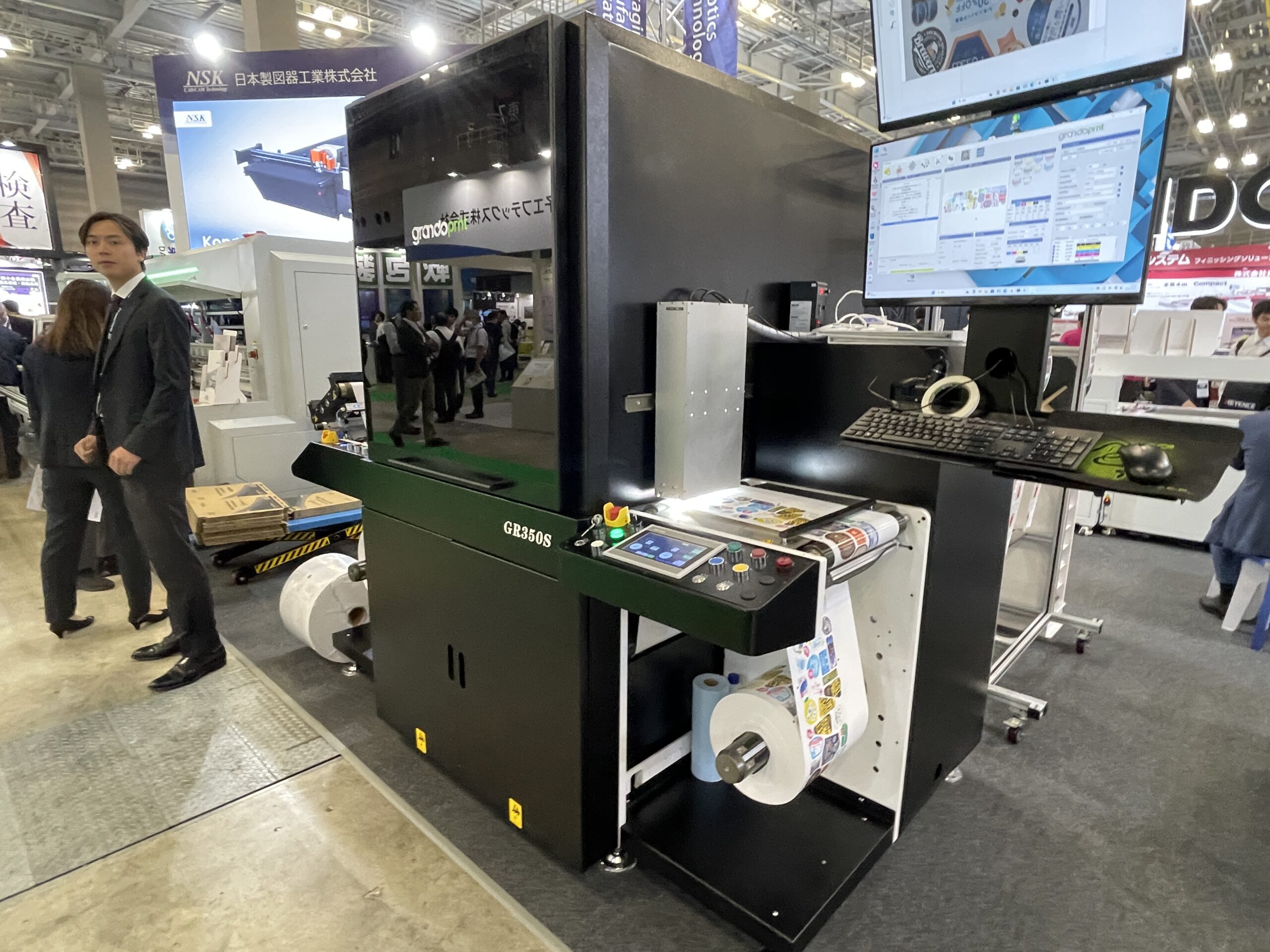 日本製図器工業が参考出品したラベル印刷機「GrandPrint GR350S」は、UVインク搭載で出力速度は30m/分。担当者は「今回で感想を聞いて今後の発売を決定したい」と述べた。