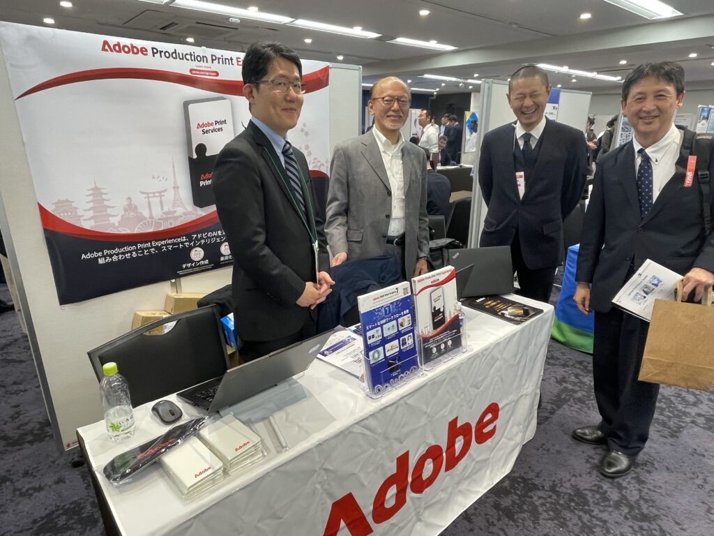 Adobeは自社アプリケーションを出品。PDFはもちろんプリント用の開発キットを解説している。中でも参考出品の「プロジェクトゴールドスミス」は加飾用のシミュレーター付きアプリケーションで、箔やニスなどの加飾データを作成し、加飾時のシミュレーションまで行える。