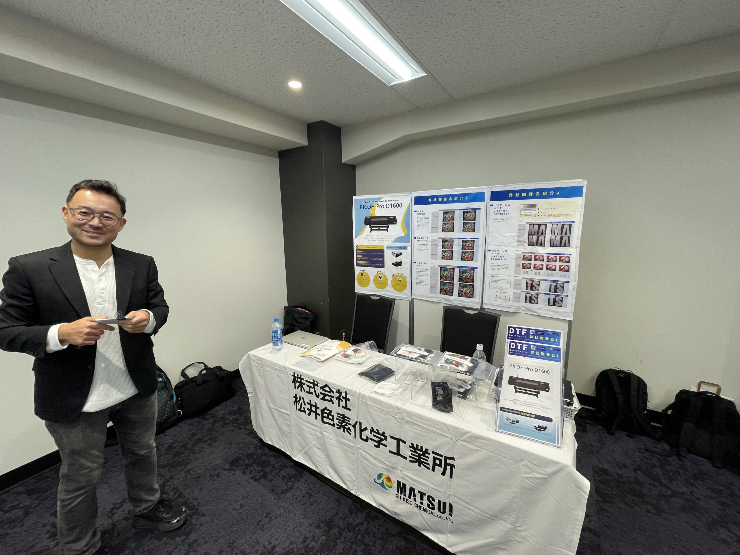 松井色素化学工業所はDTFを中心に、リコー「Pro D1600」などでこのプリント方式が活用できることを紹介。同社ではフィルムやインクを販売しており、ブースではプリントサンプルを展示している。また、同社ではDTFのプリントサービスも限定的に行っている。