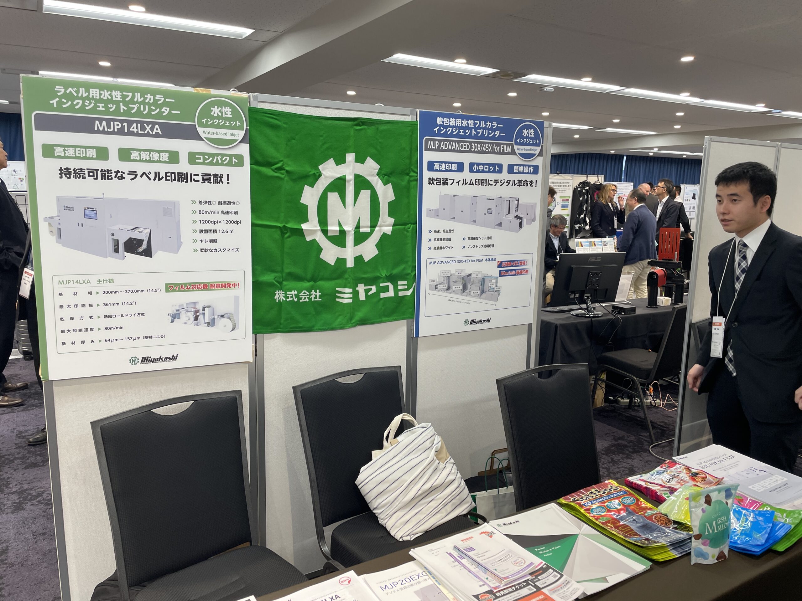 ミヤコシは、自社のインクジェットデジタル印刷機を紹介。