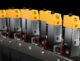 今回の展示では、1台はホログラム風のメディアに、キャラクターシールのようなデザインを出力。2台目はシュリンクフィルムへ出力し、PETボトルのサンプルも展示した。また3台目は樹脂の立体成形品へのプリントを行い、インク割れなどの不具合がないことを説明している。