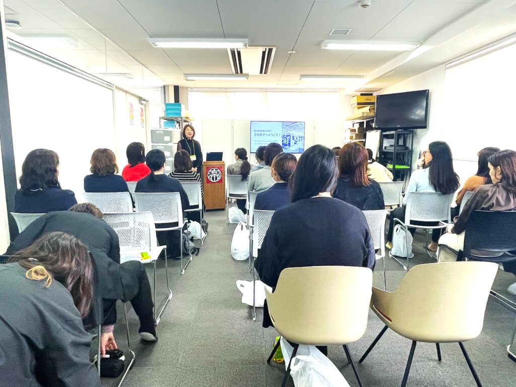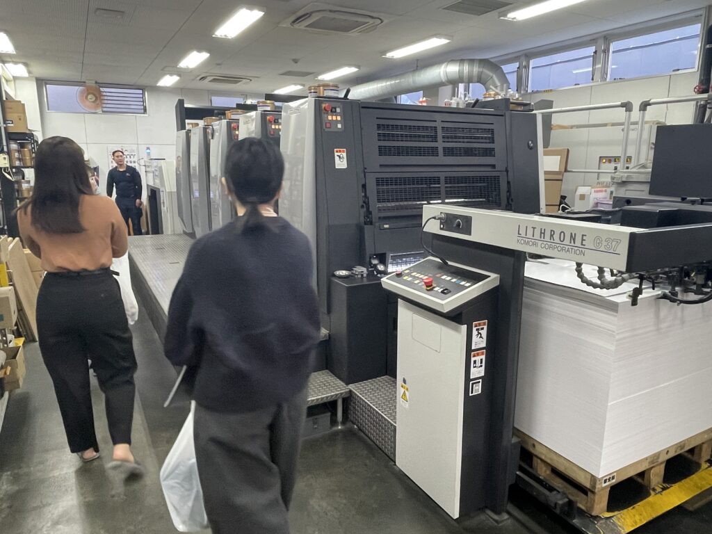 同社の岡本純子専務は「当社はコンパクトな社屋で印刷から加工まですべてを行っている。また近隣に同が制作のスタジオも近年設備した。印刷という共通の情熱を持つみなさんに当社の雰囲気を存分に味わっていただきたい」とあいさつし自社を紹介し、その後工場見学を行った。