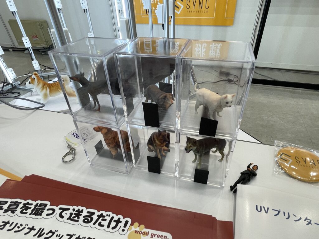 同社はOEMコーナーも設け、各種グッズやペット向け3D撮影システムなどを紹介。ユーザーの用途に応じたカスタマイズにも対応し、グッズ製造に限らない自動化機器の開発も視野に入れる。