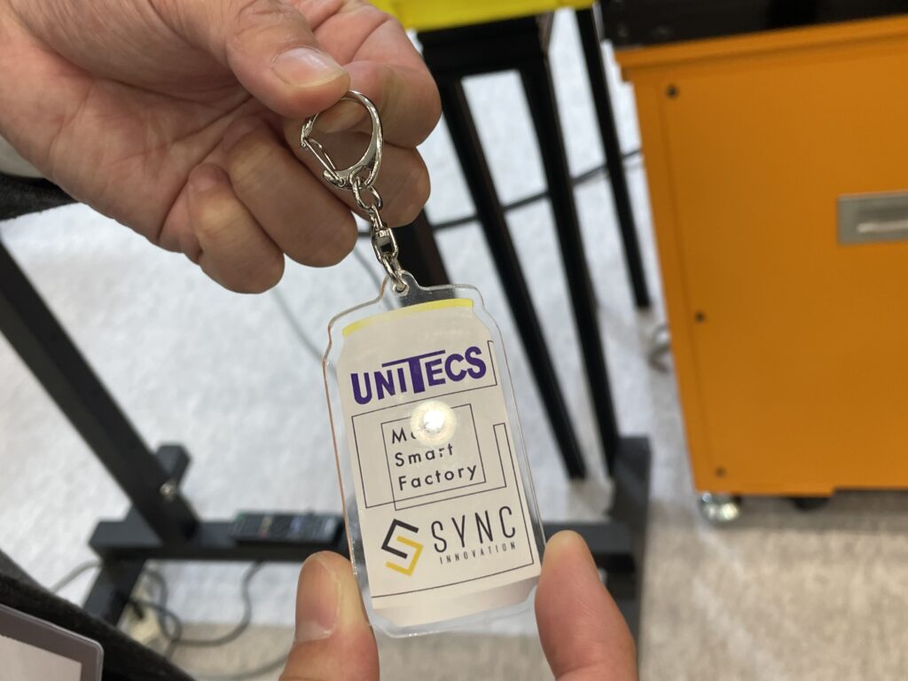また、キーホルダー製造で用いられるナスカン取り付けを自動化する「ナスカン自動機」も紹介し、従来ペンチで行っていた作業の代替を提案した。