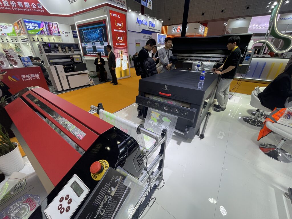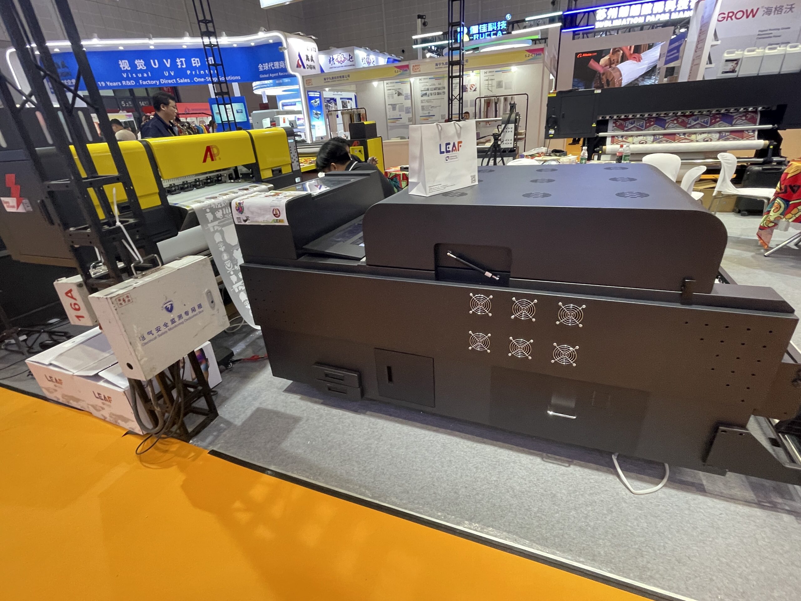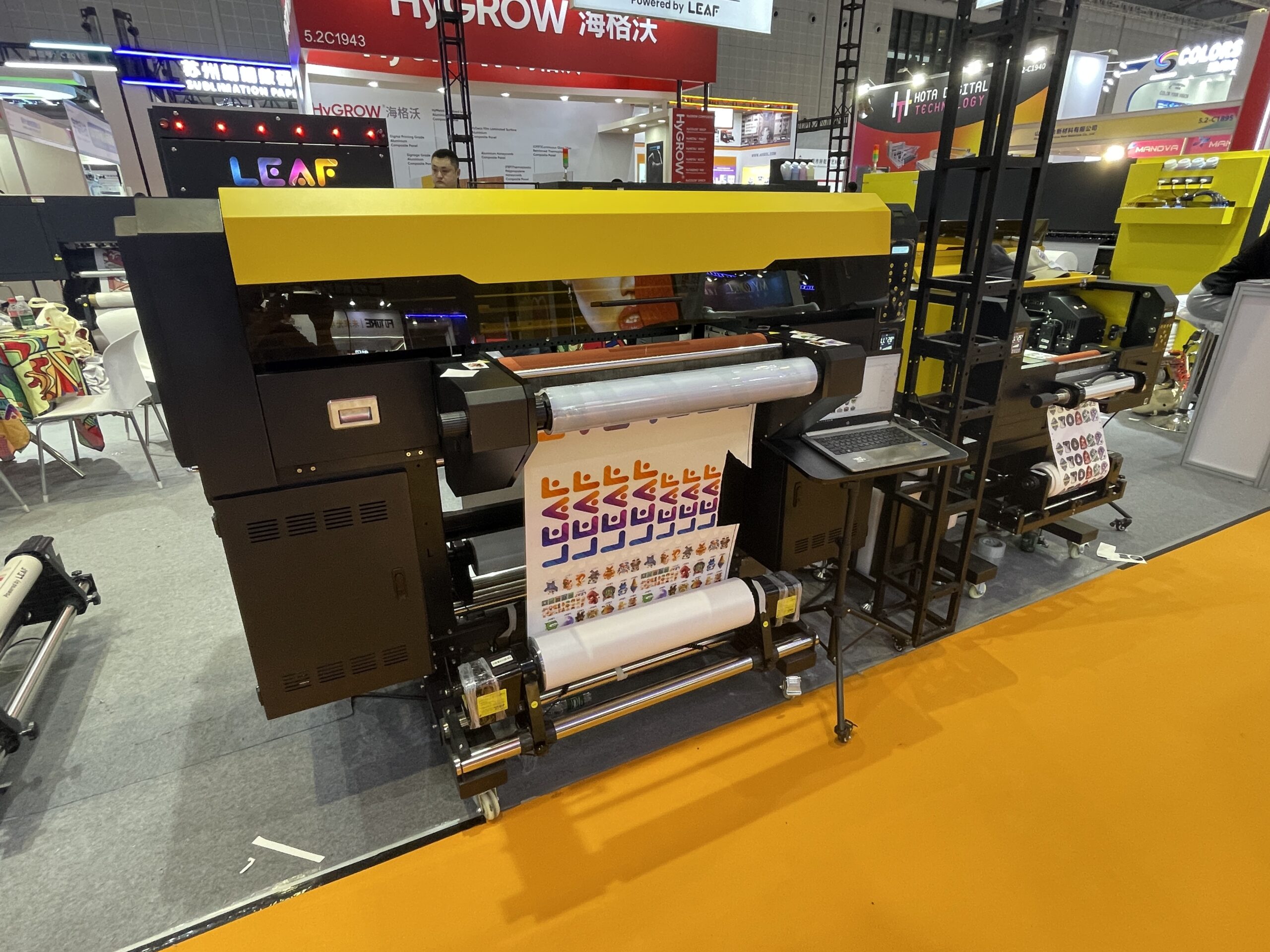 LEAF(広州ファイアーリーフテクノロジー)は1998年創業の老舗グループで、中国国内でデジタルプリントの先駆けとして長年活躍している。 主にDTFプリンタ、UV DTFプリンタ、UVフラットベッド、UV円筒プリンタ、DTFインク・フィルムなどを生産・輸出しており、海外市場向けに展開しており、「FESPA」や「PrintingUnited」などにも出展している。 同社はDTF「604」と、大小2種類のUV-DTFを展示。