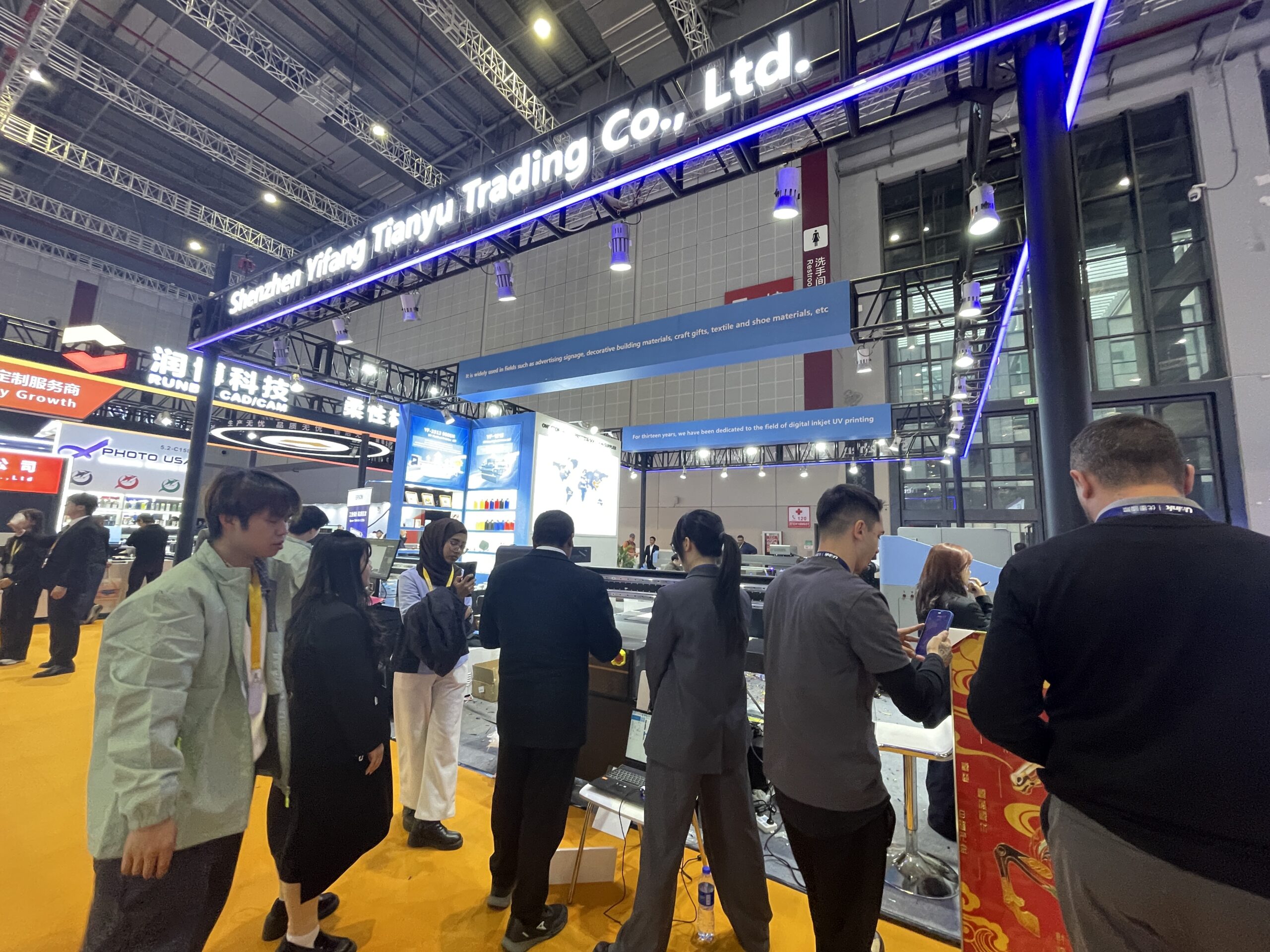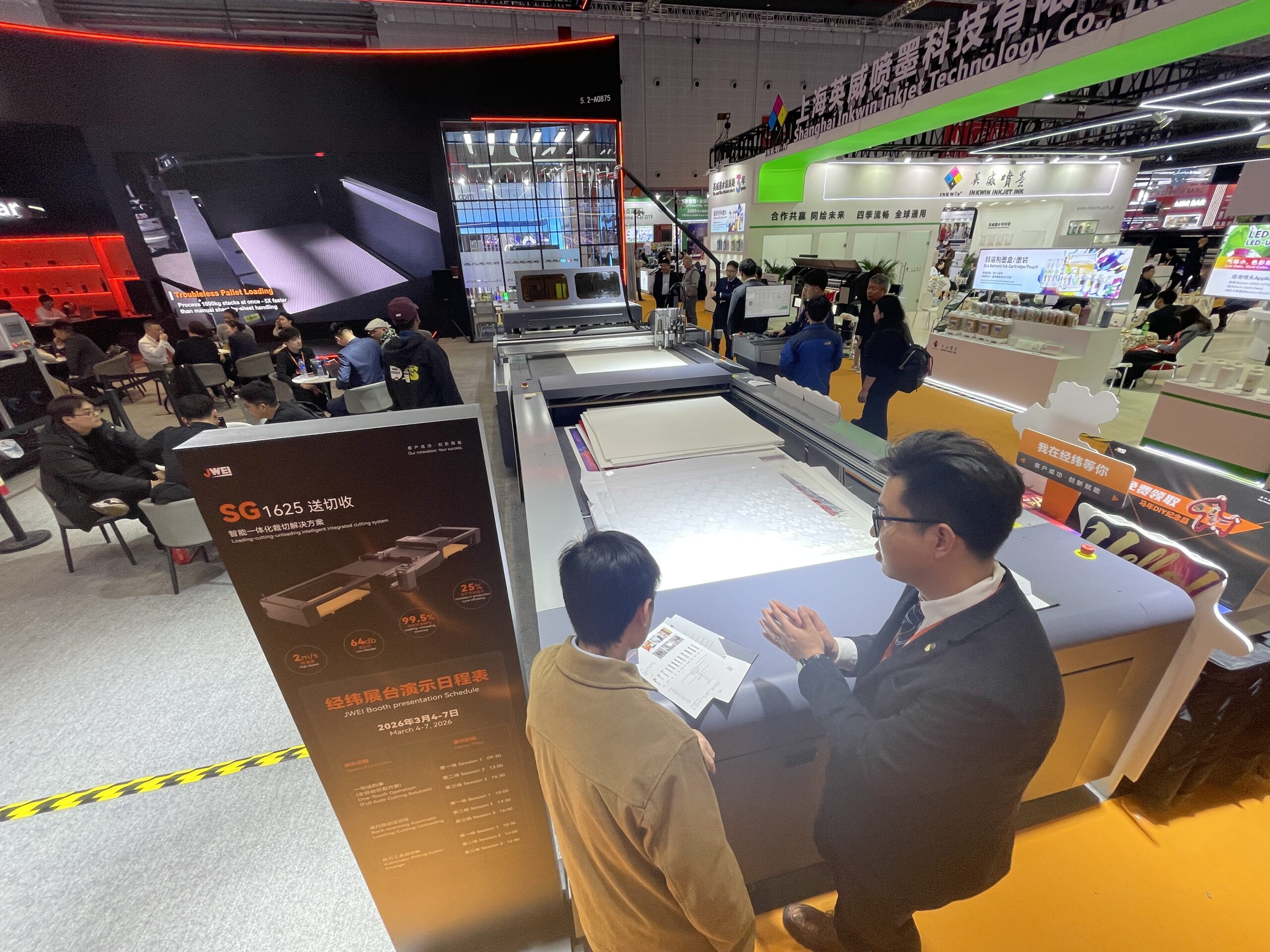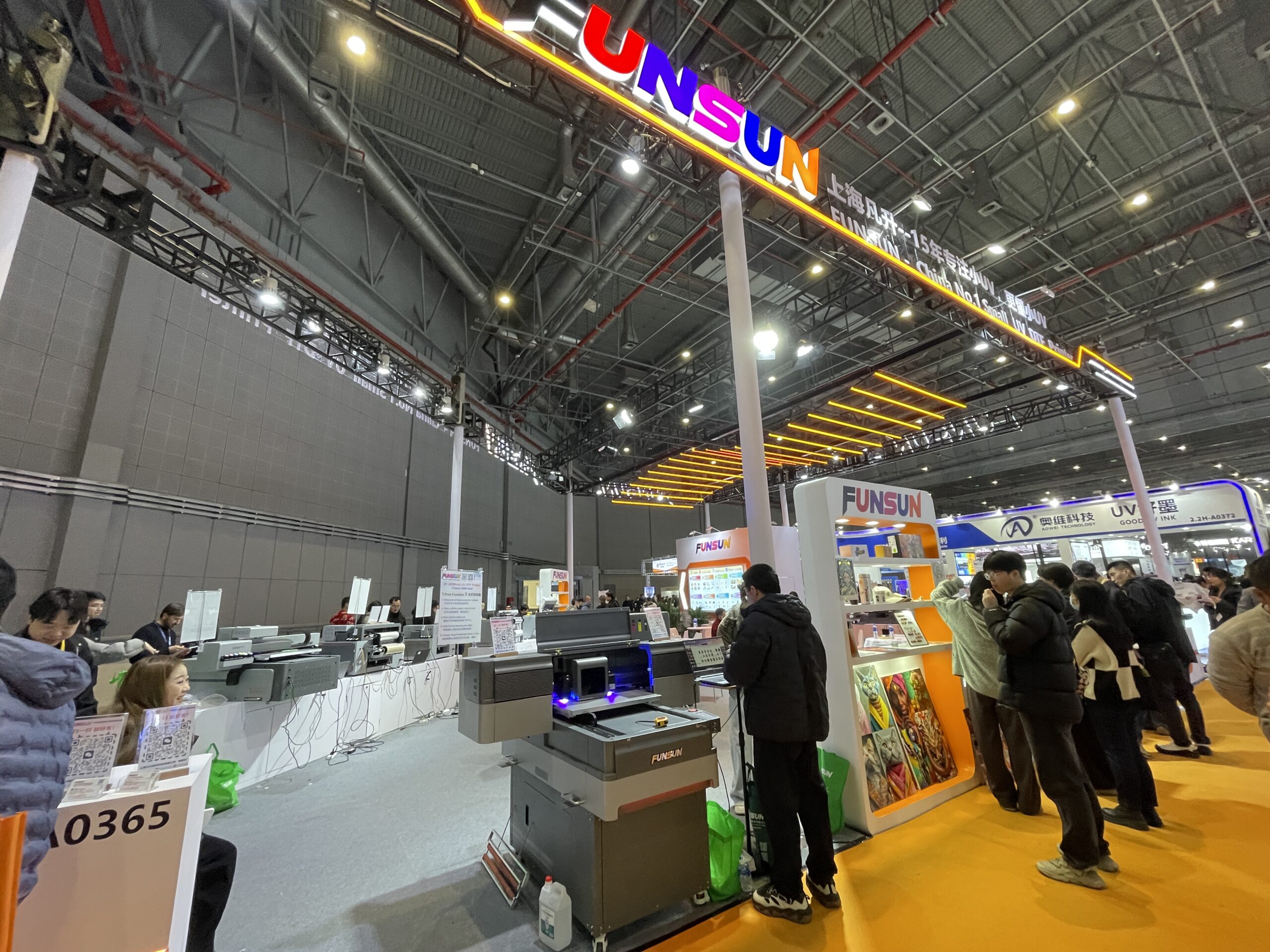 万丽达(WANLIDA)は安徽省プリンタメーカーで、2009年頃からUVデジタルプリンタの製造に注力し「WLD」シリーズが主力。「WLD-2513」は大型UVフラットベッドプリンタの定番モデルで、出力エリアは2.5×1.3m。「WLD-LV1220」は出力エリア1.2×2.0m。いずれもCCDカメラ付きで、読み取りから出力、排出までを自動化して見せていた。