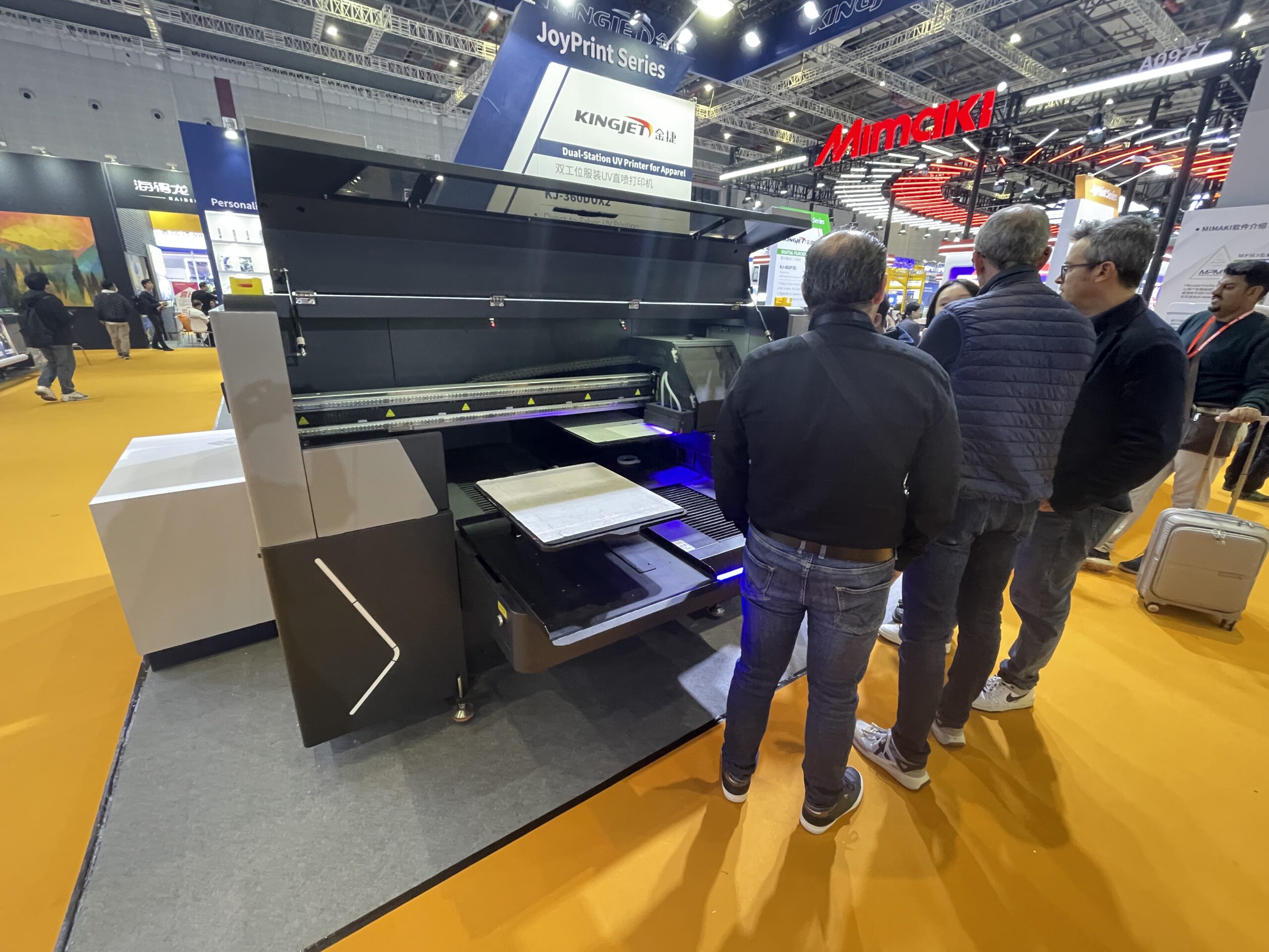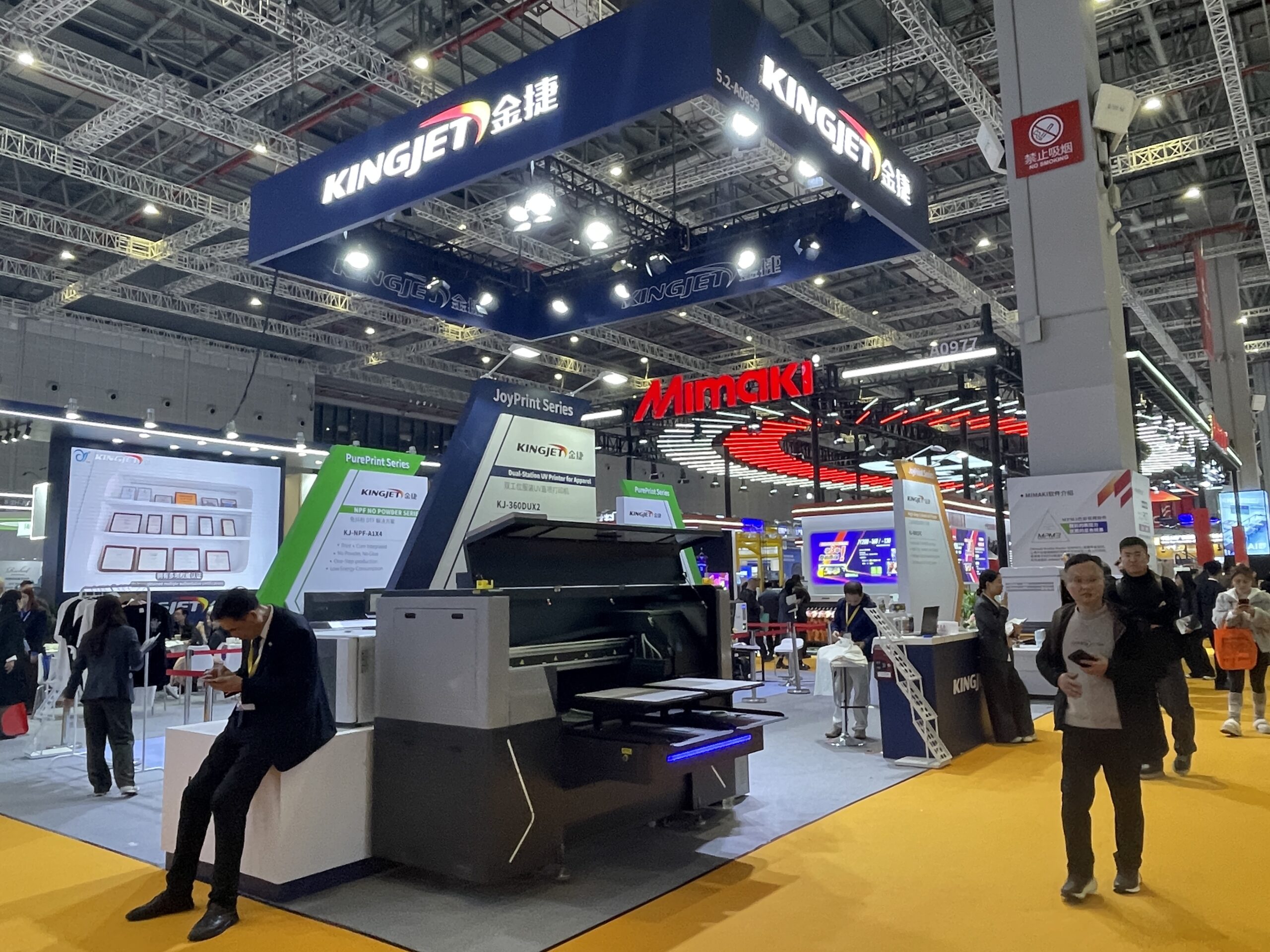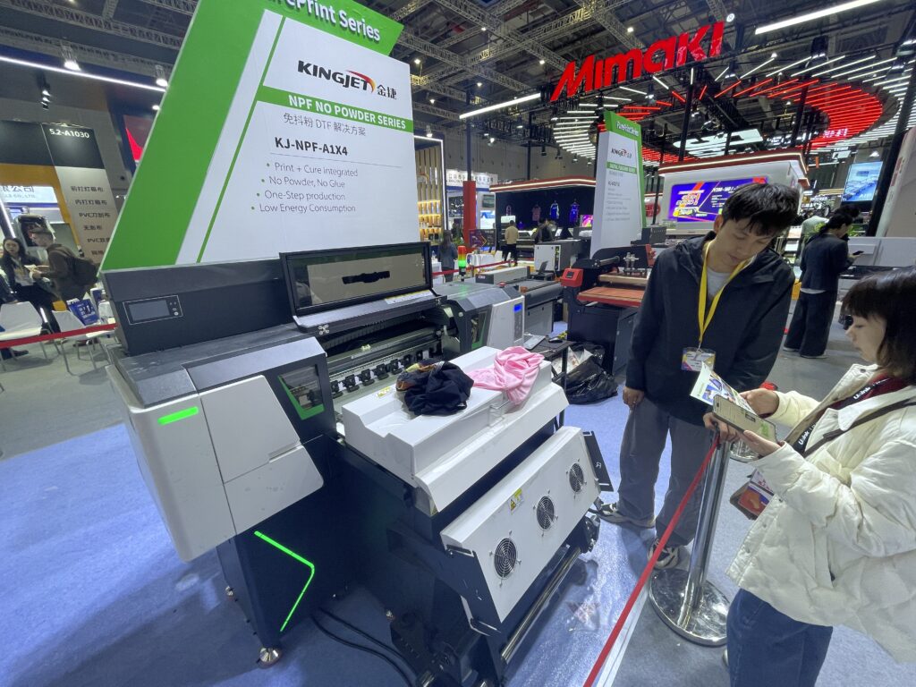 金捷(KingJet)は、カッププリンタやDTFプリンタ、UVプリンタ、エコ溶剤・昇華プリンタなどを多数ラインアップしている。現在はパーソナライズグッズやTシャツ、ボトルなどのグッズプリント関連製品が人気という。