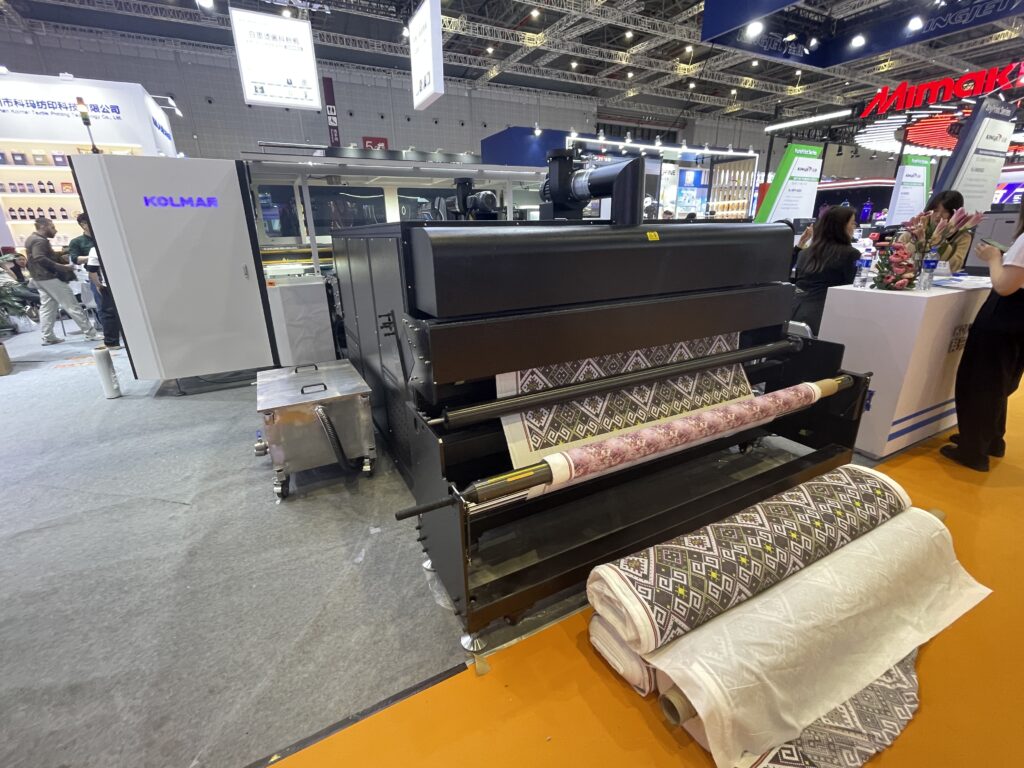 科瑪紡印(KOLMAR)は深圳の昇華転写プリンタメーカー。「KM-190032K/R」は1900㎜幅で高速モード600 m²/hで出力できる。
