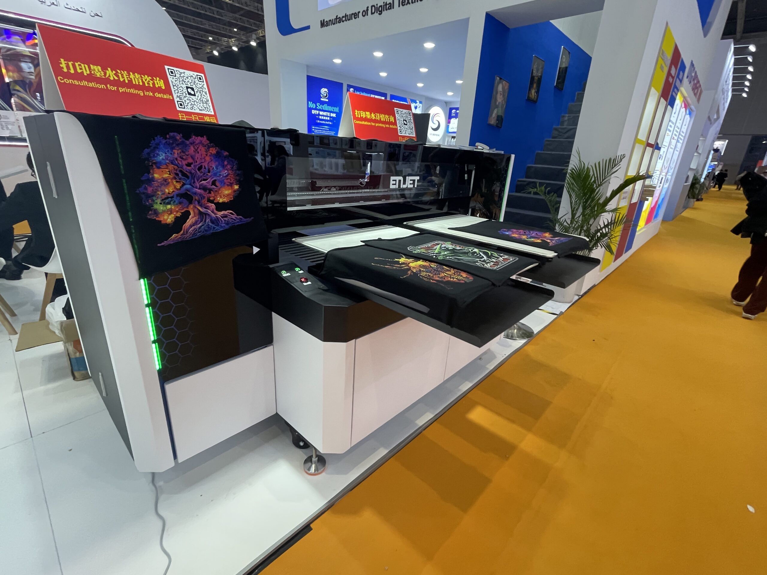 珠海佳印数碼科技は、DTGで2基のプラテンを持つ「ENJET」を展示していた。