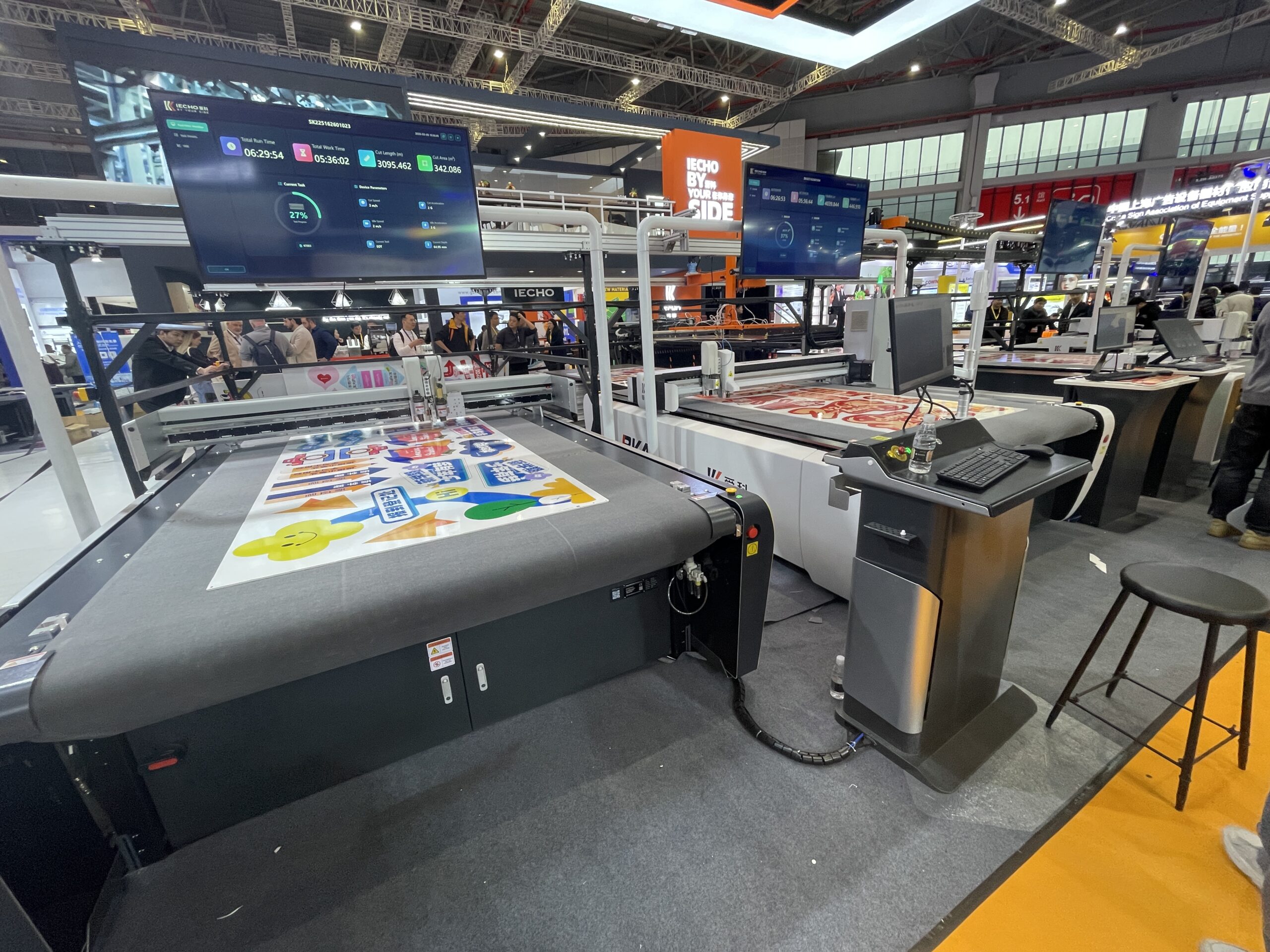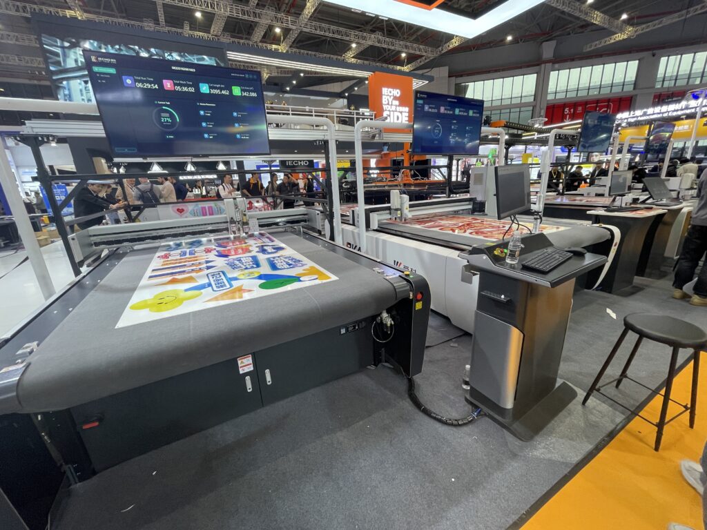 愛科(IECHO)は、1992年創業の中国大手デジタルカッティング機器メーカーで、ARISTO(ドイツの老舗ブランド、100年以上の歴史)を買収して技術統合した。 これにより「AK4」が開発された。同機は2025年発売の次世代インテリジェントデジタルカッティングシステム(フラットベッドデジタルカッター)のフラッグシップモデル。最大加工エリアは2.5× 1.6mで、高速モード1,000〜1,500 mm/sでカットできる。5月発売予定。