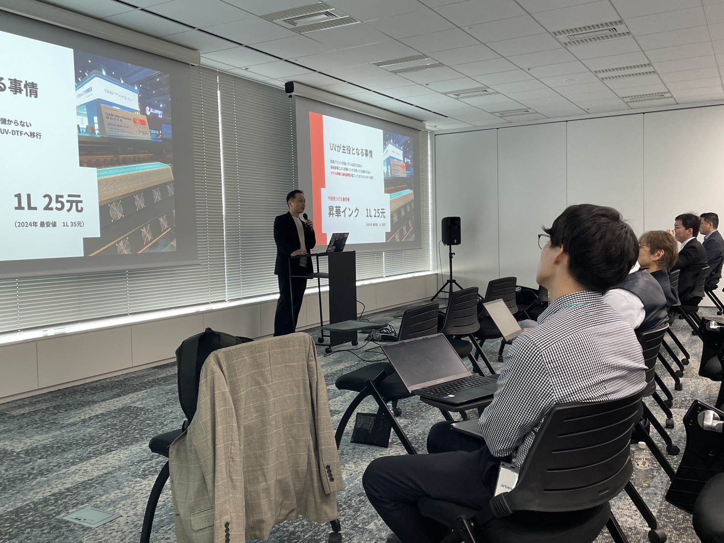 今回大野インクジェットコンサルティング(OIJC)の大野さん(彰得代表)とウチが主催(いつも大野さんにはお世話になっております)。開催場所も大野さんが会員になっているおかげで安価に借りられたという感じです。スタートアップ企業であれば、かなりお得に会員になれるので都心にオフィスや応接場所が欲しい方は入会してみるのもいいかもしれません(https://incubation-canvas.tokyo/)。