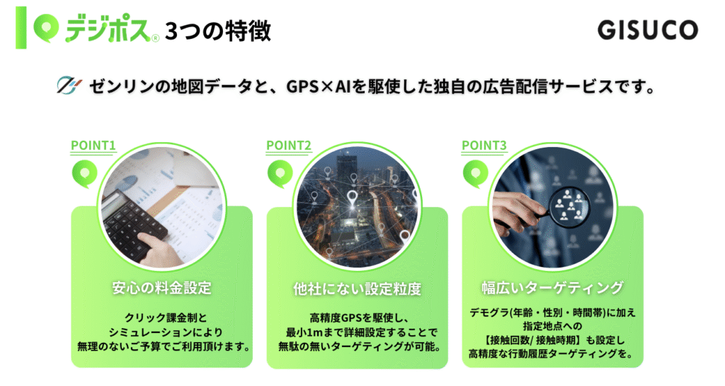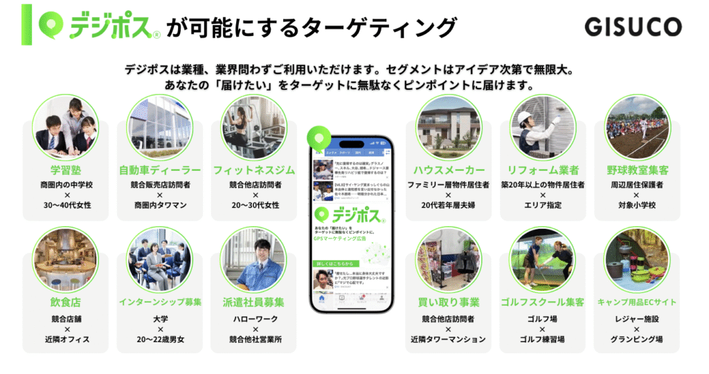 「デジポス」は、スマートフォンの位置情報を活用したGPSマーケティング広告で、2024年2月のローンチ以来、建設業、不動産業、自動車販売、飲食、医療関連など幅広い分野で導入が進んでいる。