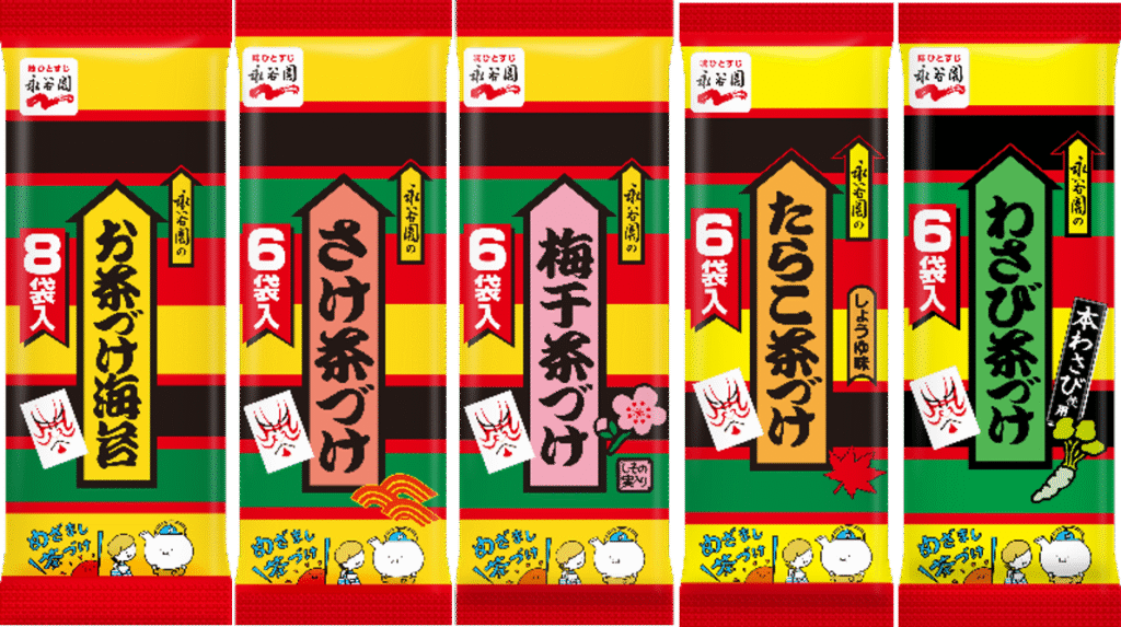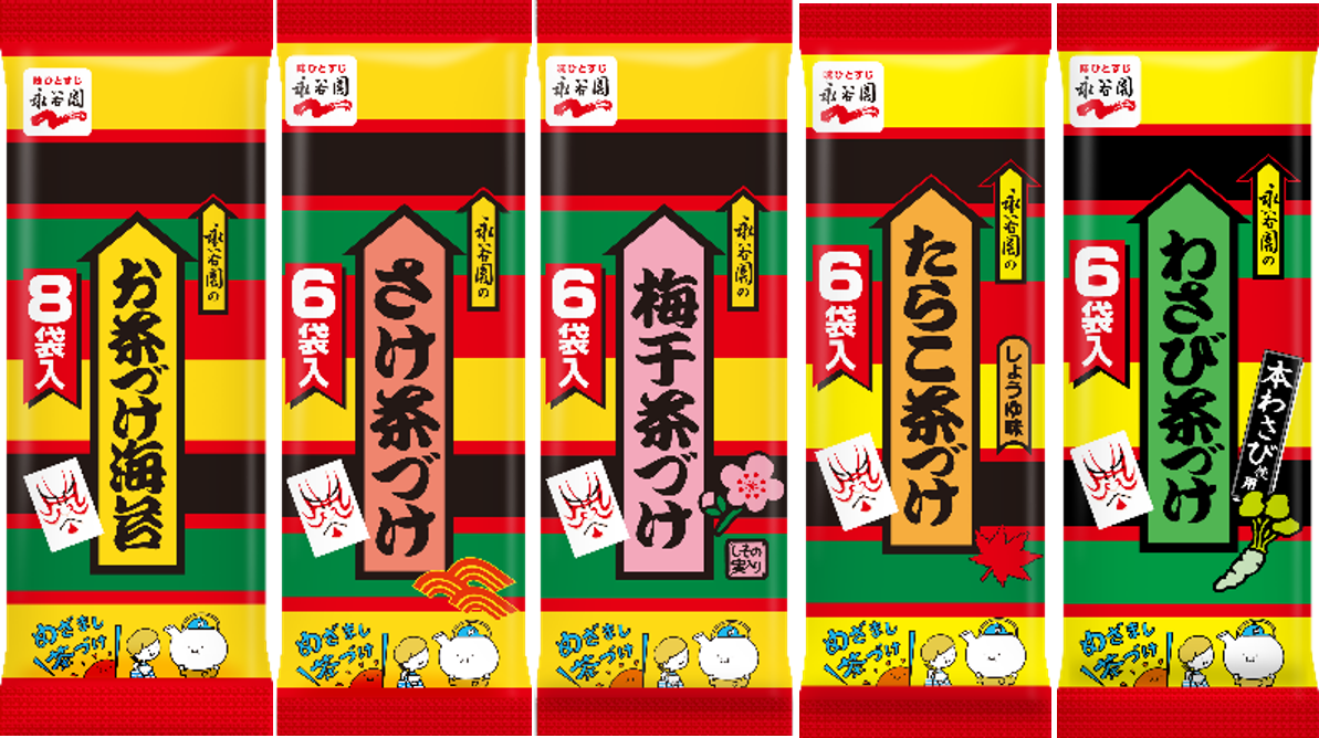 封入終了の対象商品は、「お茶づけ海苔(8袋入)」「さけ茶づけ」「梅干茶づけ」「たらこ茶づけ」「わさび茶づけ」の各6袋入り。現在実施中の「東海道五拾三次カード フルセットキャンペーン」は、2026年8月まで継続される。