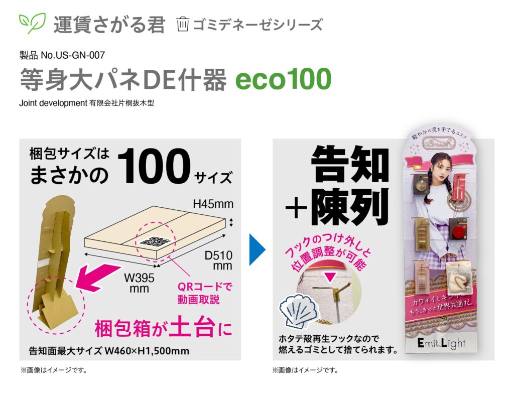 【2025年12月12日】PXCはこのほど、環境配慮型販促物「運賃さがる君/ゴミデネーゼシリーズ」の「等身大パネDE什器 eco100」の販売を開始した。