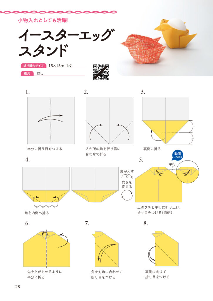 書籍化は、SNS動画を視聴したメイツユニバーサルコンテンツからの提案がきっかけである。動画を見ながら自分のペースで折り進めたいという読者ニーズに応える形で、紙面による詳細解説と映像による動きの確認を両立させた構成とした。スマートフォンなどで2次元コードを読み込むことで、折り方動画を随時参照できる。