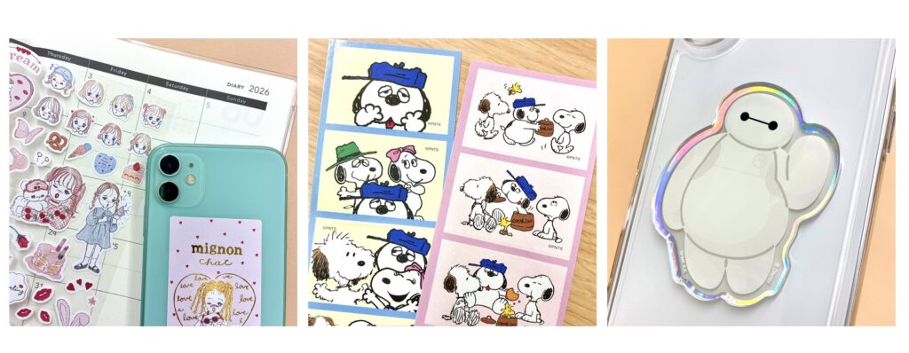 「4コマステッカー」は、キャラクターの表情やポーズがコマごとに変化する4コマ漫画風のデザインが特徴。1コマずつ貼ることも、4コマをまとめて楽しむこともできる。韓国発の人気プリントシール文化から着想を得たストーリー性のある仕様で、スヌーピー、ムーミン、ミニオンズなど全8種を各330円(税込み)で展開する。