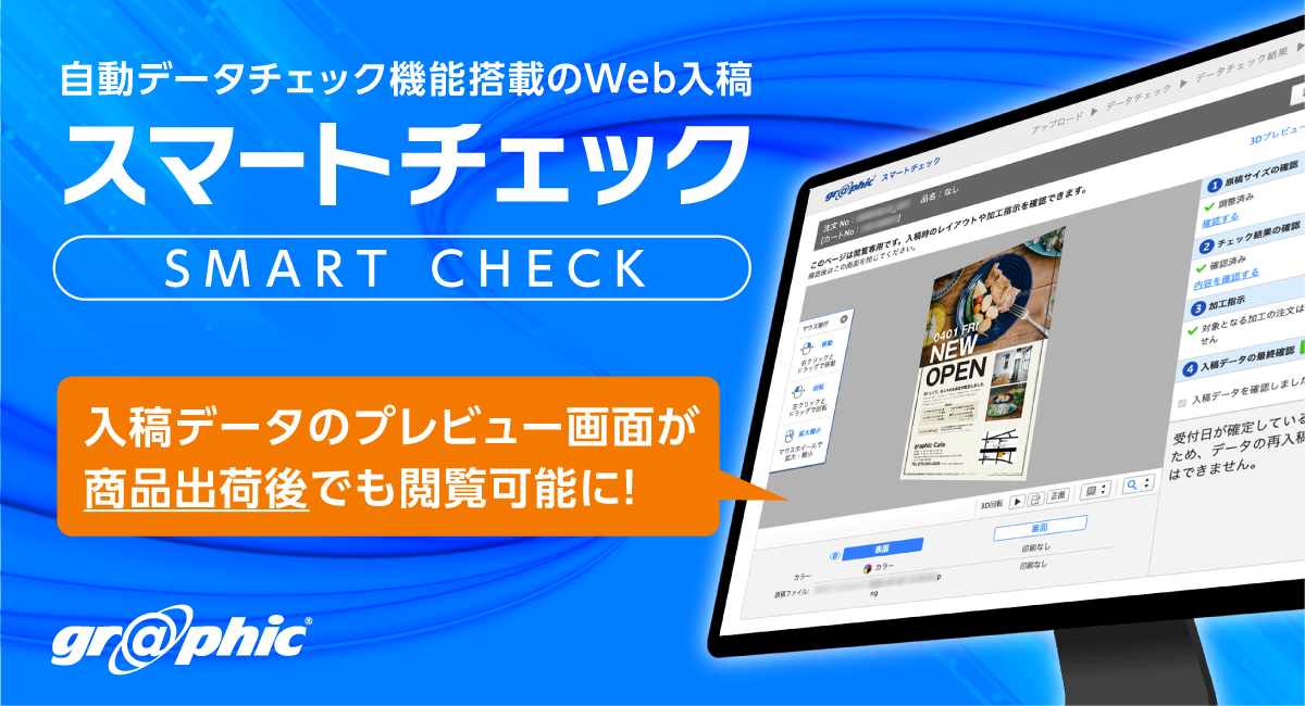 【2026年4月24日】ネット印刷通販「印刷の通販 グラフィック」を運営するグラフィックネットプリントは、入稿データを自動でチェックし仕上がりプレビューを確認できる「スマートチェック」に新機能を追加した。