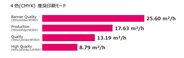実用印刷モードでは、同クラスの4色モデルとして最高クラスの17.63㎡/hの生産性を達成している。
