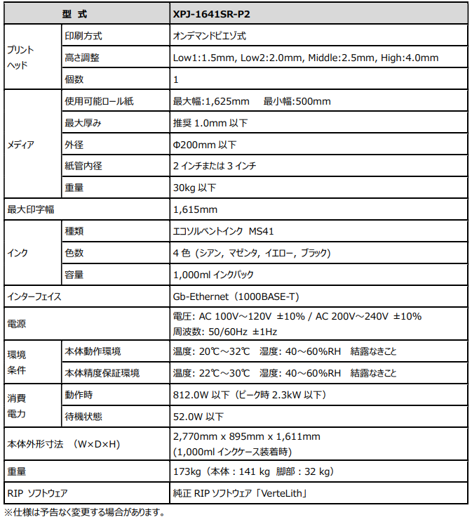 環境性能では、発色性と耐候性に優れる純正エコソルベントインク「MS41」を採用。「MS41」は米国の環境基準UL GREENGUARD Gold認証を取得しており、屋内用途にも対応する。