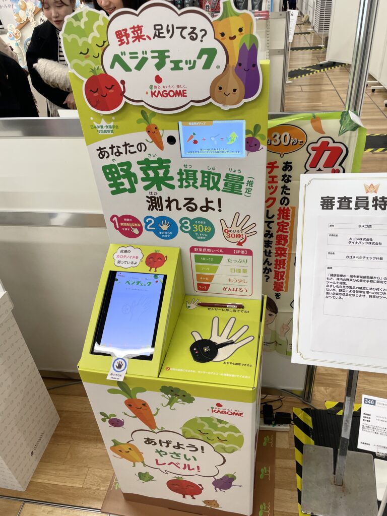 審査員特別賞・「スゴ技部門」金賞は「カゴメベジチェック什器」(カゴメ、ダイナパック)で、「健康管理の一端を野菜摂取量から」の理念で、体内の野菜分の量を手軽に測定できることが評価された。