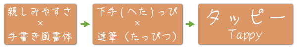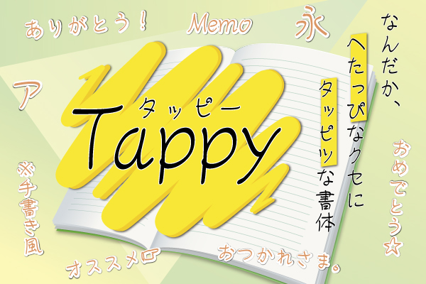 書体名は「下手っぴ」でもあり「達筆(たっぴつ)」でもあることから「タッピー」と名付けられた。学園生活をテーマにした映像作品やテレビCM、食品・飲料のパッケージなど幅広い用途での活用が期待される。
