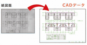 建築図面しか残っていない20年以上前の古い建物は、改装工事などの際に必要なCADデータへの書き起こしに時間と工数がかかる。