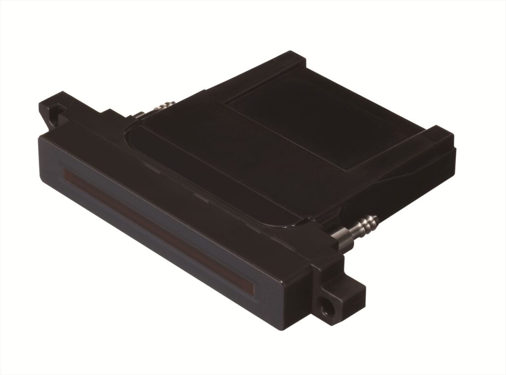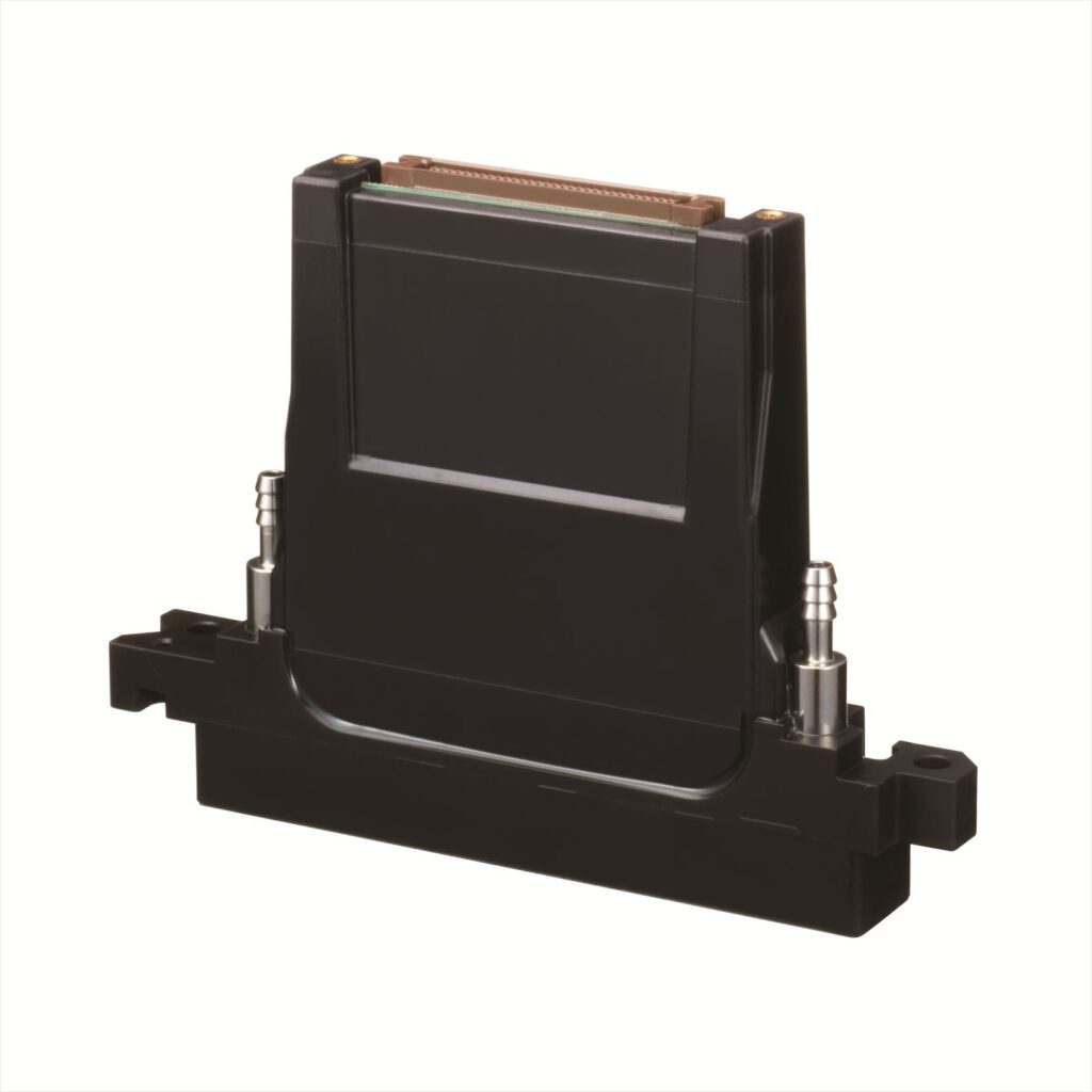 「KM1024iSHE-HM-LV」は、コニカミノルタの高精細・高速印刷向けインクジェットヘッド「KM1024iシリーズ」をベースにした新製品。薬品耐性を強化し、ディスプレイ、有機半導体、金属ナノインクなど多様な材料塗布にも対応する。72mm幅に1024ノズルを高密度に配置し、安定した吐出と高速駆動を実現。ヒーター内蔵構造により高粘度インクの塗布にも対応する。
