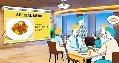 「ミセメディア」は、飲食店内にプロジェクターなどの大型ディスプレイを設置し、映像演出やタイアップメニュー、サンプリングなどを組み合わせて来店客の五感に訴求するメディア。2025年1月から展開している。