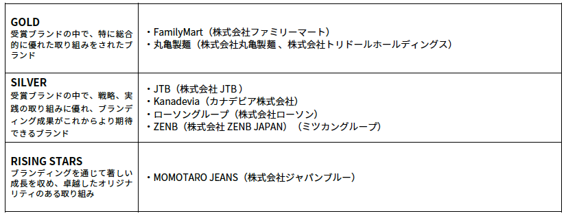 最高賞「GOLD」は、FamilyMartと丸亀製麺が受賞した。