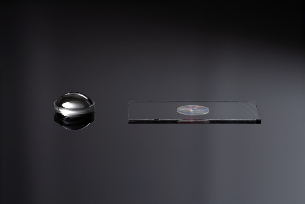 メタレンズは、ガラス表面に光の波長より小さい柱状構造であるメタアトムを配置し、光の進行を制御する技術を用いたレンズ。従来は1センチ以上の厚みが必要だった光学レンズを、1ミリ以下まで薄型化できる点が特長となる。